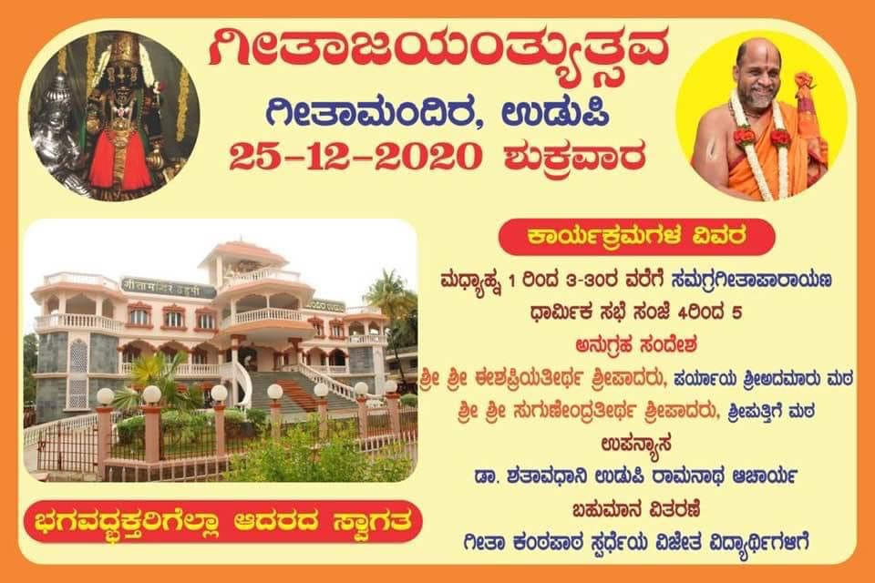 HH Sri 1008 Sri Sugunendra Theertha Swamiji on the auspicious occasion of Gita Jayanti which is observed on the Shukla Ekadashi of Margashirsha month. This year, the auspicious day will be observed on December 25